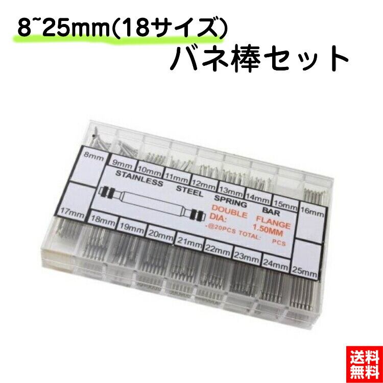時計 バネ棒 パーツ ベルト コマばね棒 バネ棒 18サイズ 8mm 20mm 22mm など 各約15本 270本 送料無料
