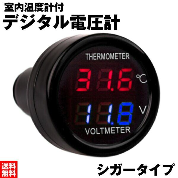 シガーソケット 電圧計 シガー 温度計 デジタル バッテリーチェッカー 12V 24V 車 車内 送料無料