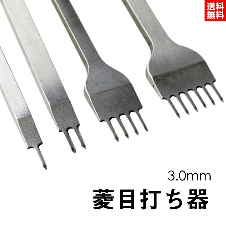 レザークラフト 道具 菱目打ち 3mm 4本 セット 工具セット ハンドメイド 皮革 革 細工 趣味 送料無料