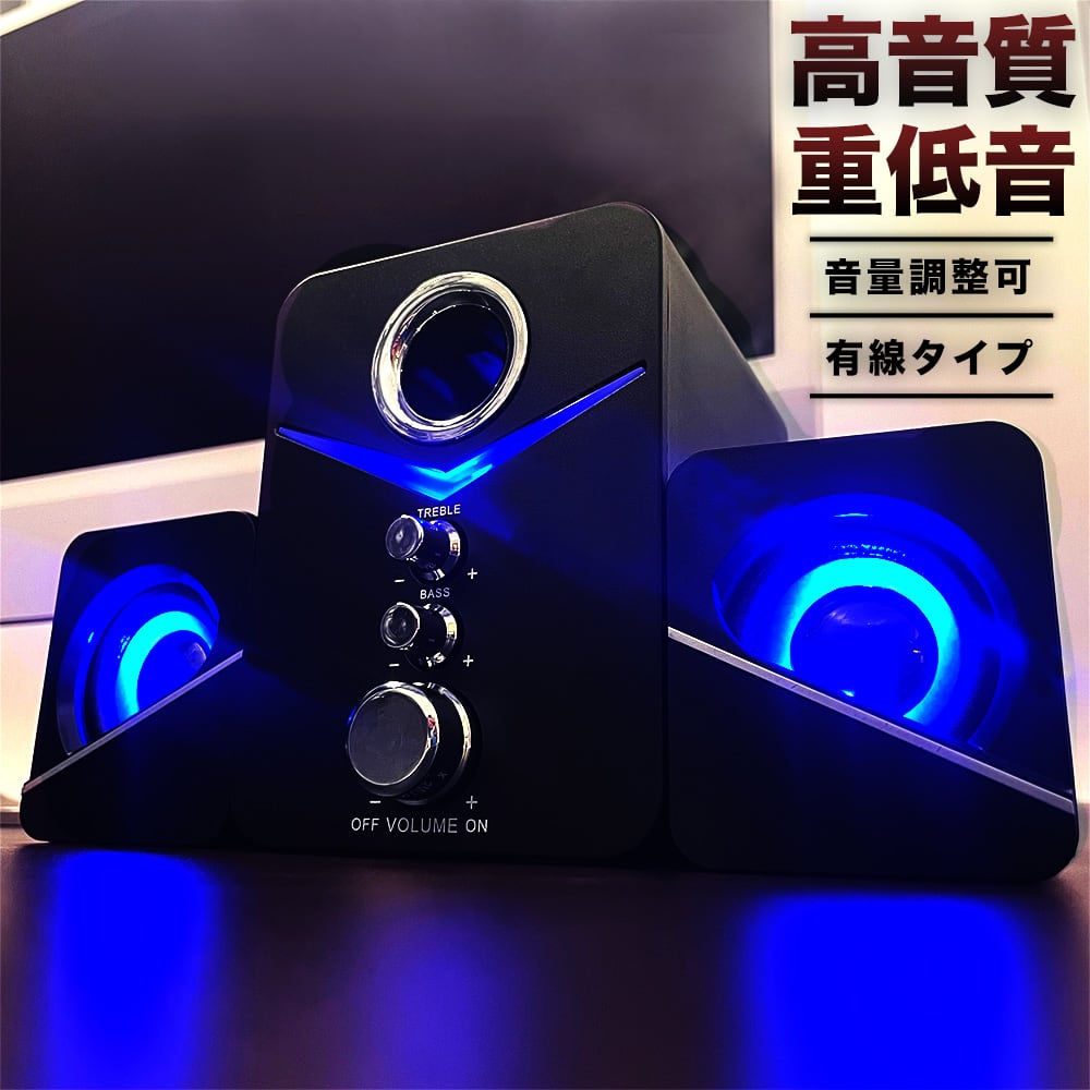 スピーカー 重低音 高音質 3ユニット AUX USB PCスピーカー ウーファーおしゃれ 軽量 コンパクト スリム 9D サラウンド LED PC スマホ ポータブルスピーカー